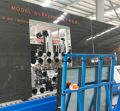 This machine is a fully automatic unloading robot for glass unloading.